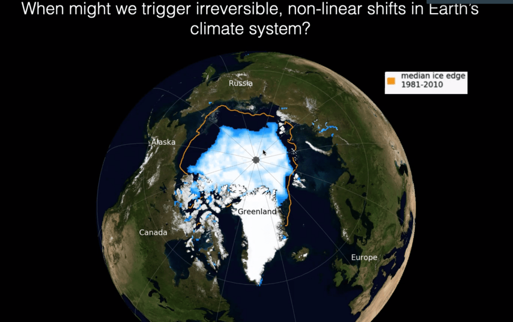 He also talked about how once certain things happen in regards to climate, it can snowball. For example, the rise in temperatures has led to the melting of Arctic sea ice. Arctic sea ice is very reflective, and serves to reflect the sun’s rays back. Just like a black car absorbs more heat than a white car, the ocean now absorbs more heat in the spots where the sea ice has melted away. Thus the loss of Arctic sea ice can lead to an even faster increase in ocean temperatures… which then melts sea ice even faster, and so on.