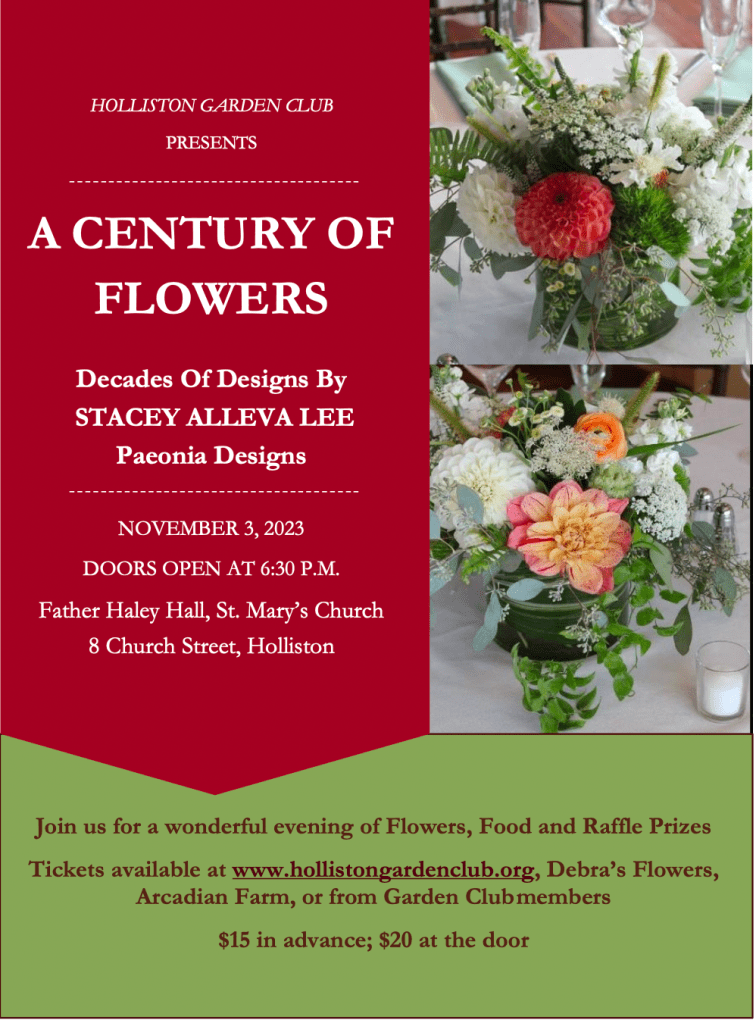 • Holliston Garden Club Presents “An Evening of Flowers with Michael Derouin” September 29, 2025