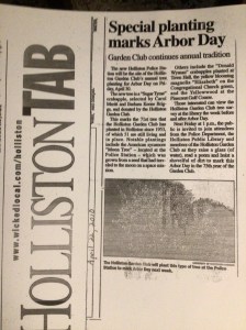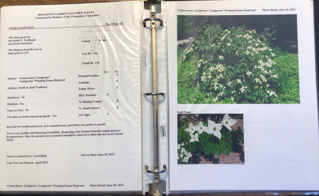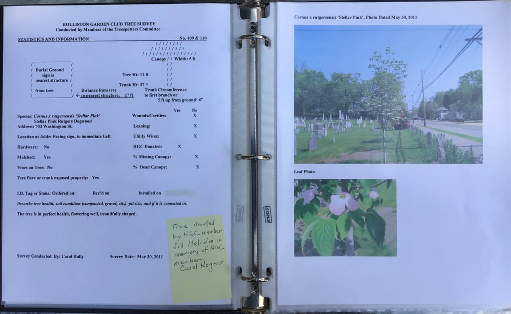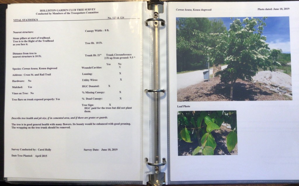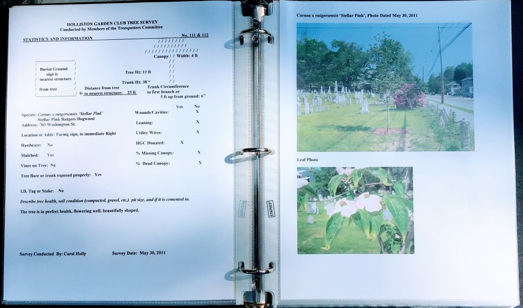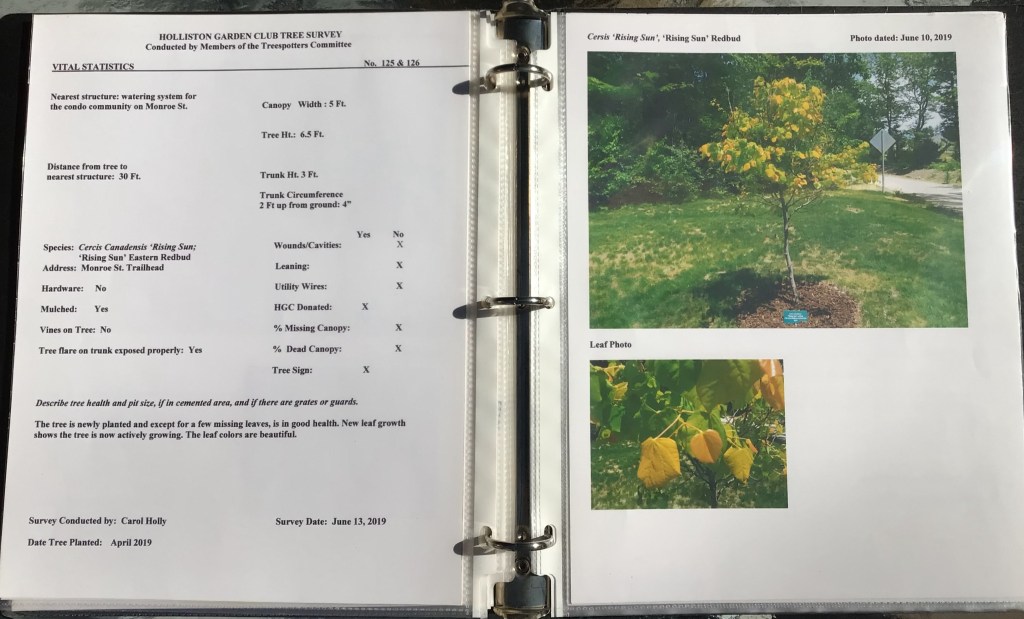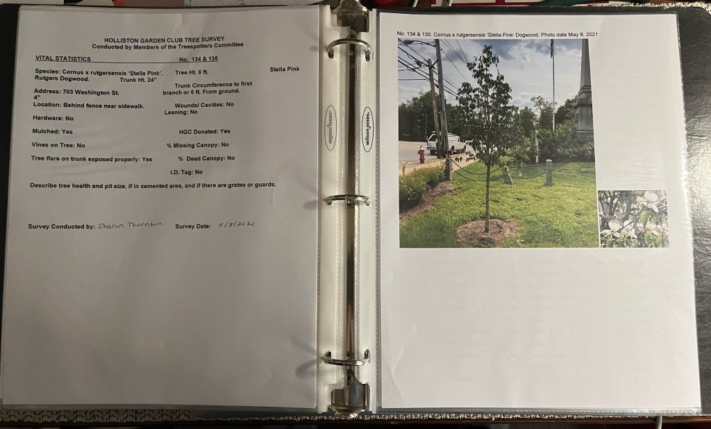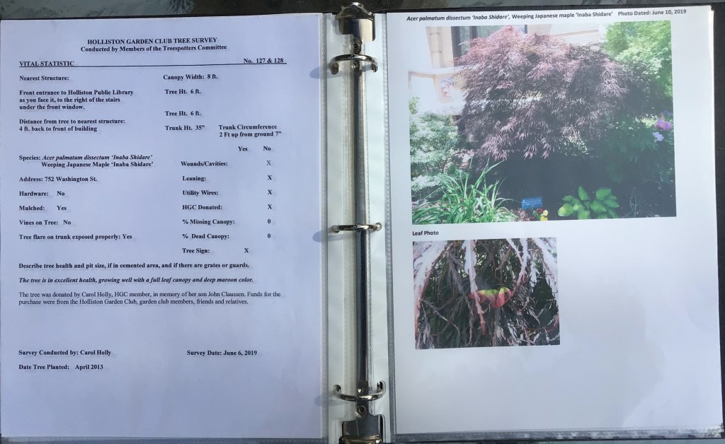 Over the years, the Holliston Garden Club has planted many trees and shrubs throughout our town of Holliston, MA. Our first tree survey was undertaken in 2010 in an effort to identify the many trees planted by the club. After going through club records, over 70 trees were identified, including an American Sycamore called the ‘Moon Tree’, which was planted from a seed that traveled on the Apollo 14 Lunar Mission in 1971 and is located next to the Holliston Police Station. A second tree survey was compiled in 2019 in order to include later planted trees. A few trees have been removed since planting, but many still remain to grace us with their beauty.