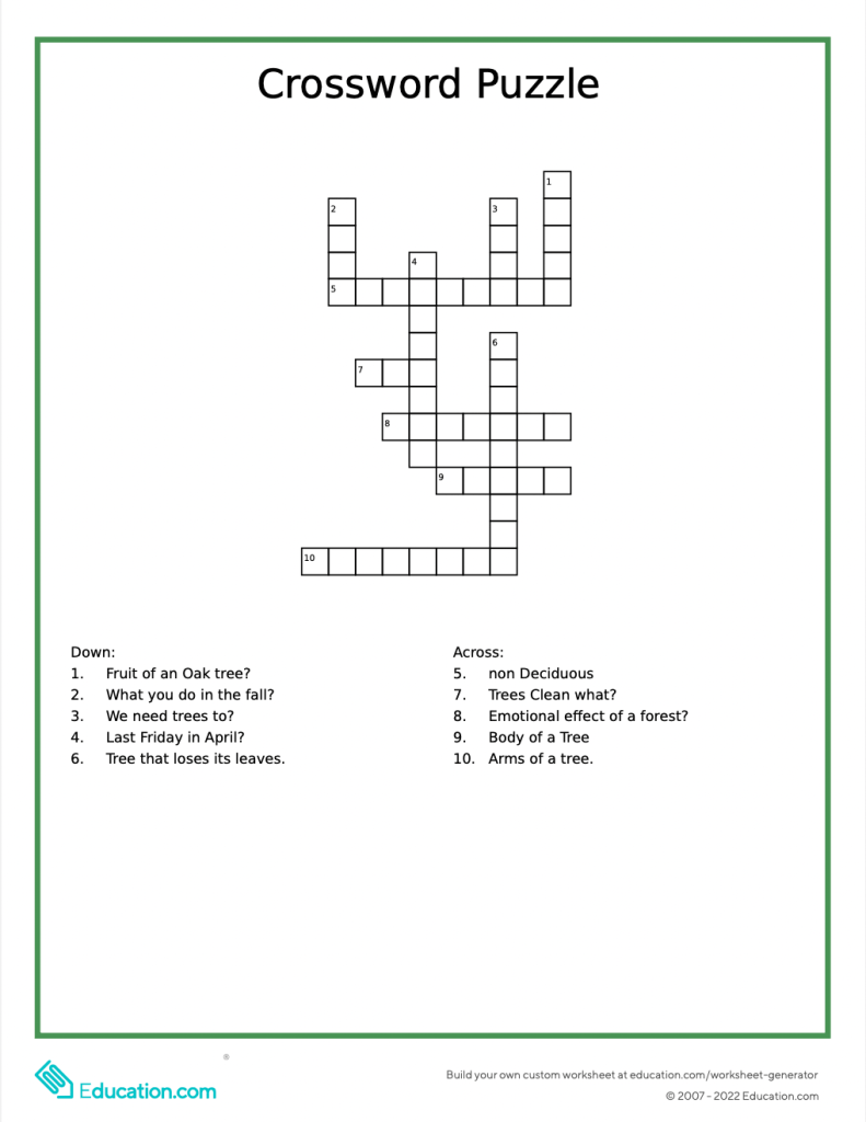 Native Trees Crossword Puzzle
